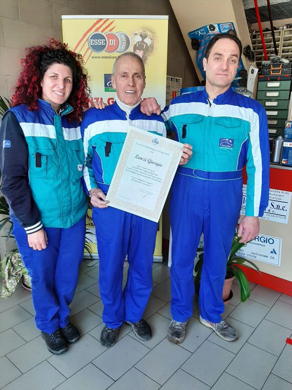 Nel frattempo, lo raggiungono in azienda il figlio Luca, fin da giovanissimo appassionato dei motori e affascinato dal lavoro in officina e poi la figlia Lucia che, oltre che per conseguire il diploma, ha studiato anche per diventare responsabile del Centro revisioni.
